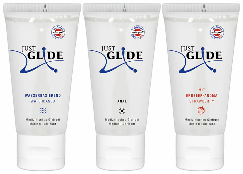 Sættet indeholder 3 forskellige glidecreme der er vandbaserede og 100% vegan. Just Glide er udviklet til sart hud og Dermatologisk testet samt fedt- og oliefri. Just Glide kan også bruges sammen